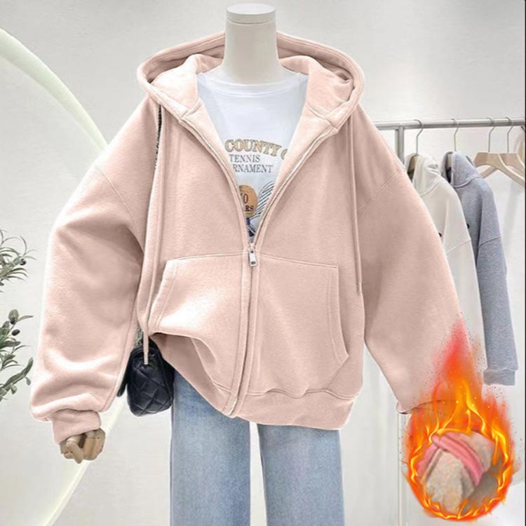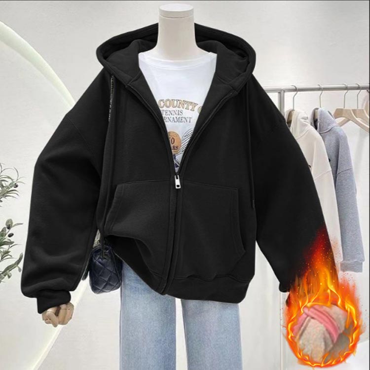 フルジップ仕様なので羽織りとしても着やすく、体温調整や季節の変わり目に便利。