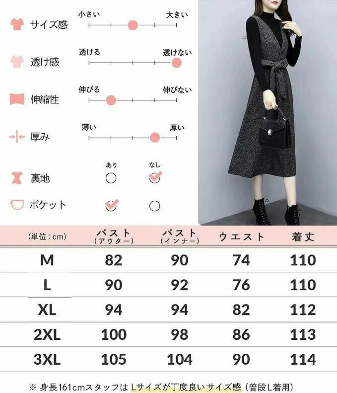 【一瞬で旬のレイヤードコーデに】インナーとセットで着るだけでおしゃれに決まるニットトップスとジャンパースカートのセットが登場しました。