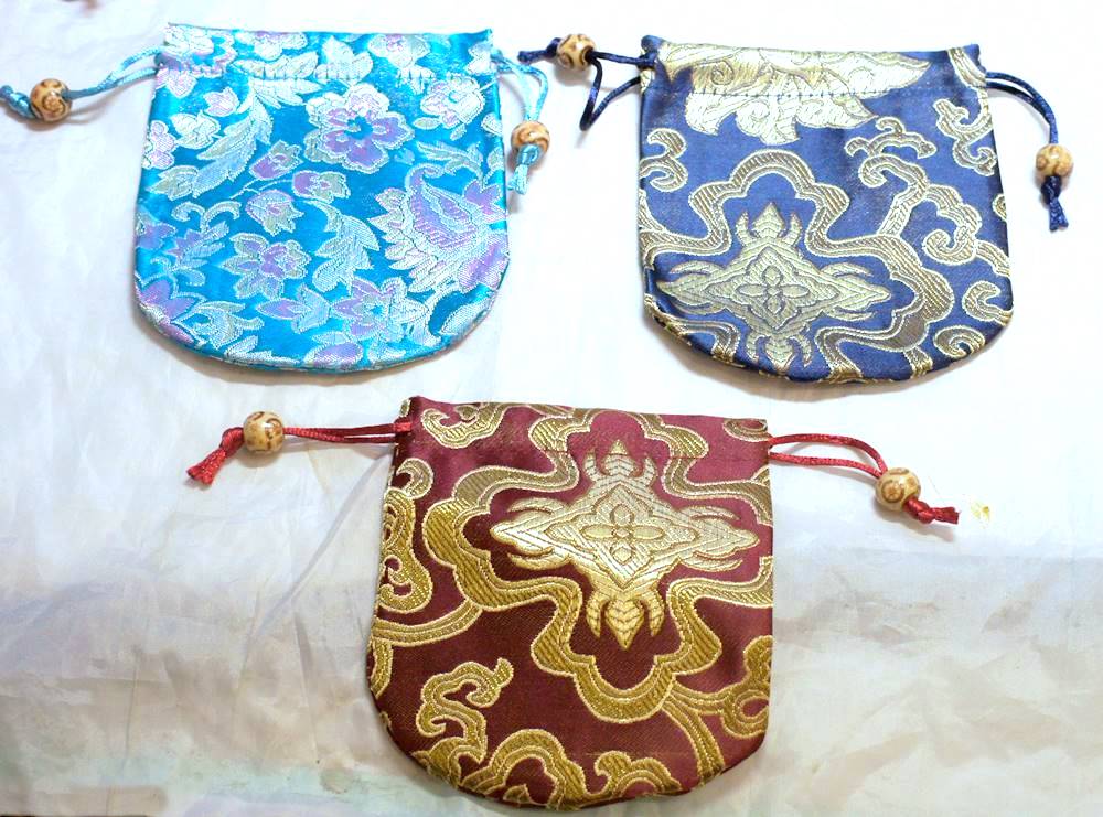 中華模様 サテン地 巾着袋 色お任せ2枚セット 2225K107 大きさ:約11×約11cm