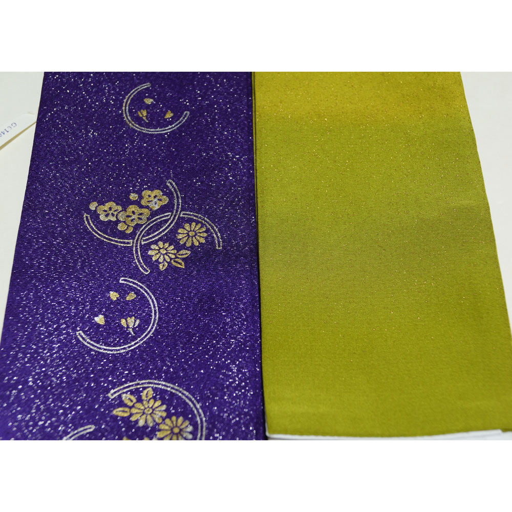 年 代 おススメの年代:とくになし 備 考 ・深紫色系・梨地紋に銀通し、金彩の花丸紋、フォーマル用・抹茶色系ぼかし地に金蒔き、フォーマル向き。
