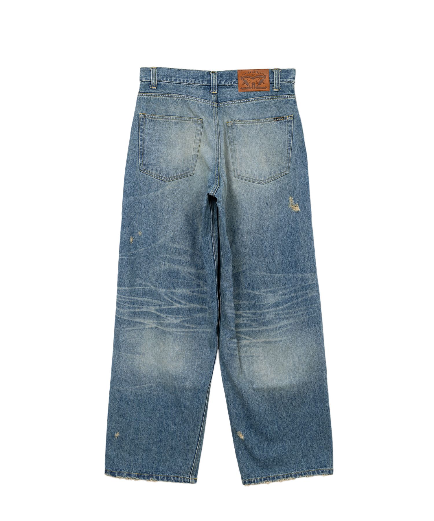 KAMIYA カミヤ DENIM WIDE PANTS クラッシュ加工を施したワイドジーンズ。
