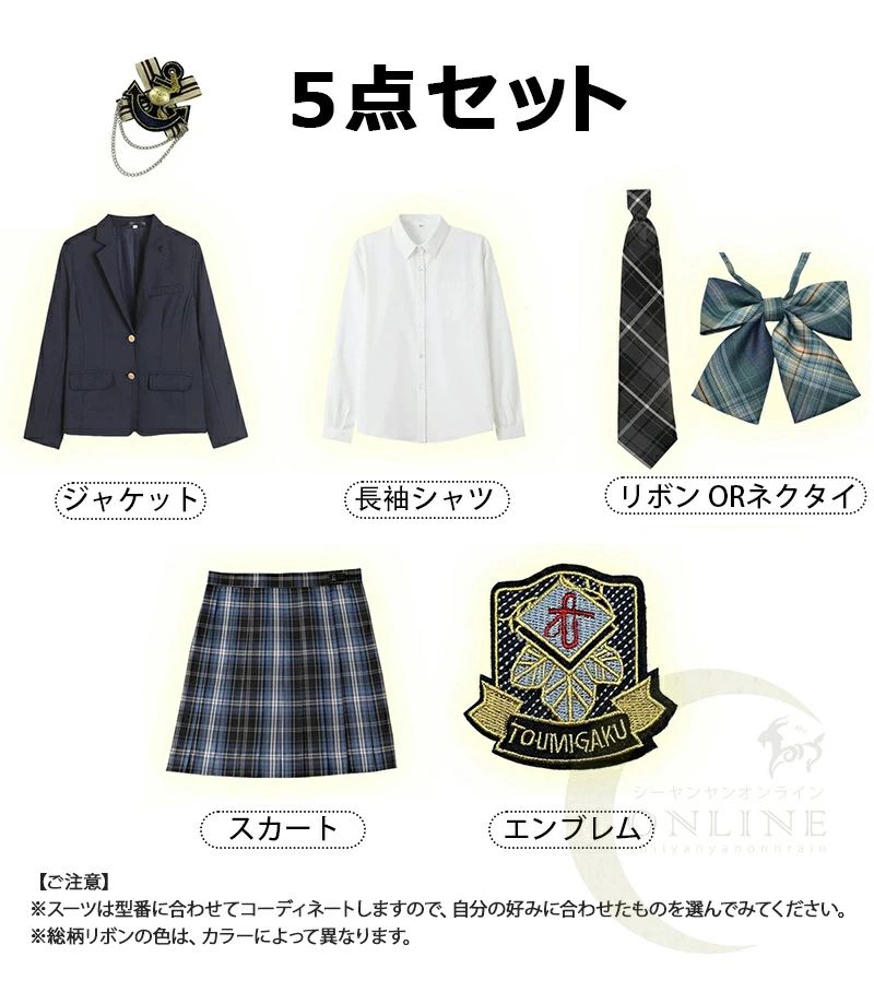 【お勧めポイント】 5点セット内容:ジャケット +シャツ + スカート + ネクタイまたはリボン+ バッジ しっかりしたオリジナル生地を使用。