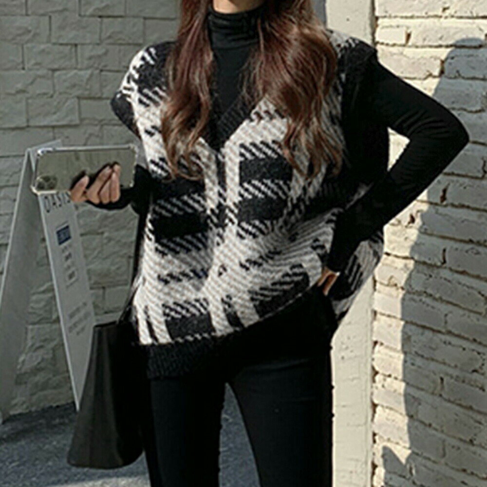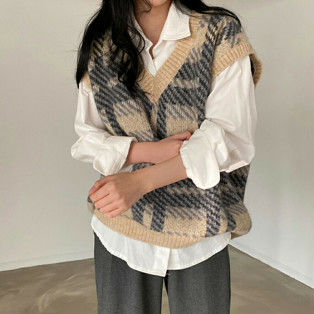 素材:ポリエステル75%+アクリル25%カラー:ブラック/ベージュサイズ:ワンサイズ着丈:約62cm 肩幅:約51cm 身幅:約52cm 胸囲:約104-135cm裏地:なし伸縮性:あり透け感:なし生産国:中国韓国風 チェック柄ベスト ショート丈 ノースリーブ ニットトップス レイヤードベスト Vネック レトロ 20代 30代旬のレイヤードスタイルに欠かせないニットベストレトロ感たっぷりのチェック柄でとても上品なお洒落感を作り出すニットベストはロンTやシャツ、ブラウスとのレイヤードはもちろんワンピースとのレイヤードもオススメ