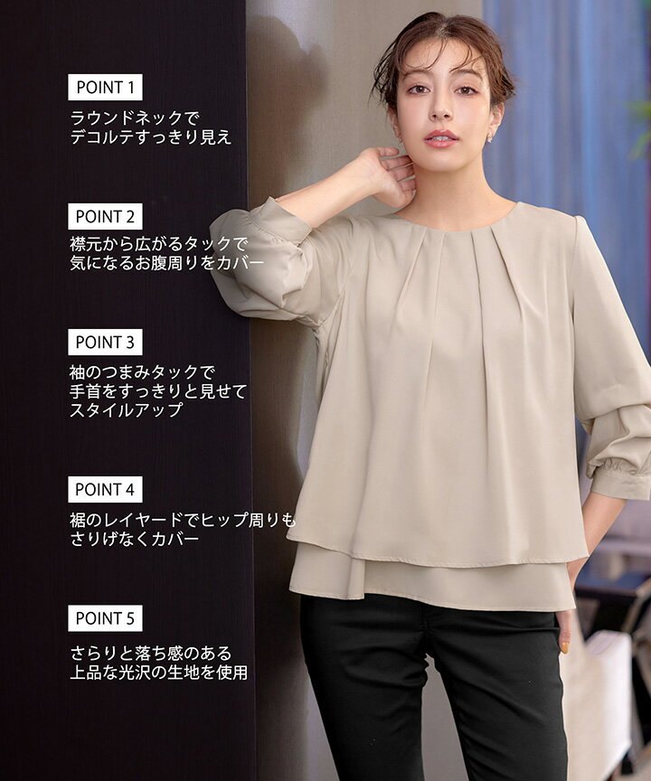 【 Tiaclasseオリジナル 】 胸と袖のつまみタックが華やかでフェミニンなブラウスです。