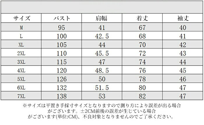 *伸縮性の高いカットソーやニット製品は、製品の性質上、±3cmを越える個体差が許容されます。