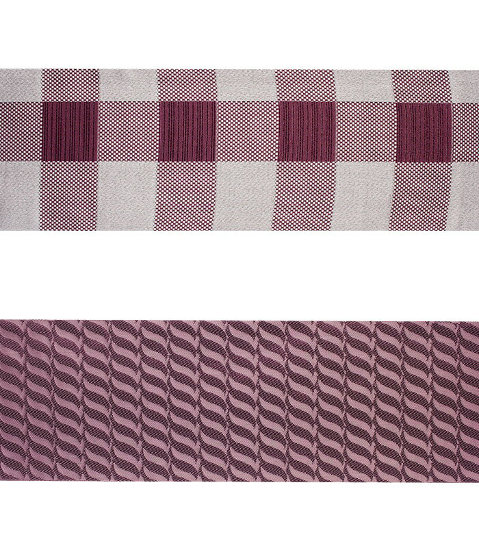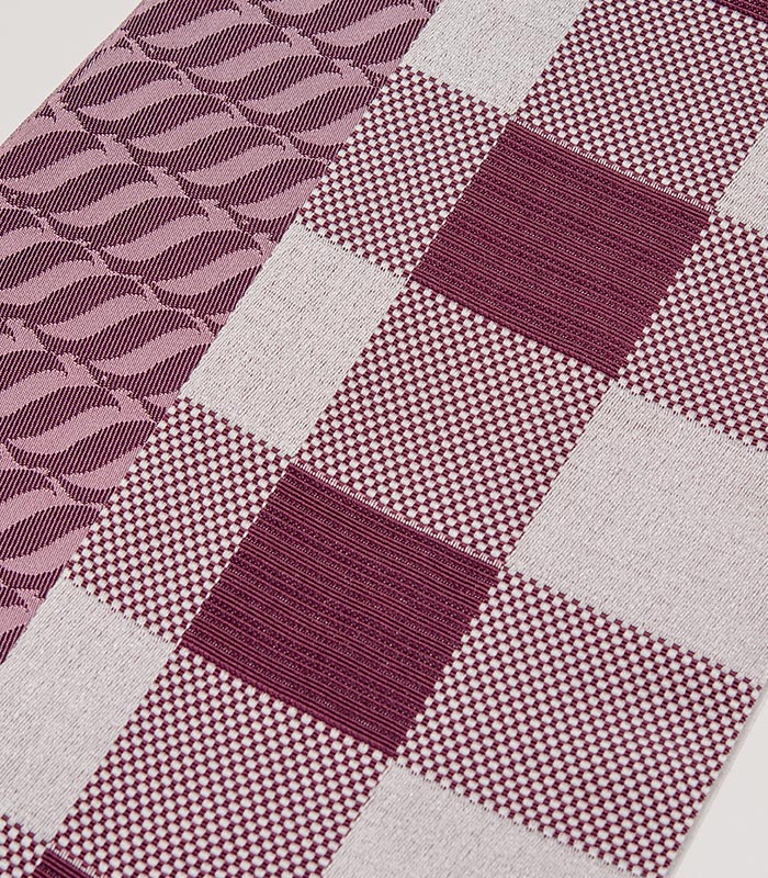 ボルドーのチェック柄と、ボルドーの濃淡であらわしたシンプルで使いやすい斜め縞柄のリバーシブル。