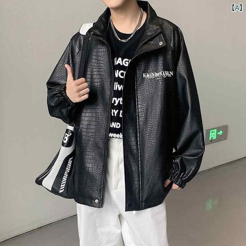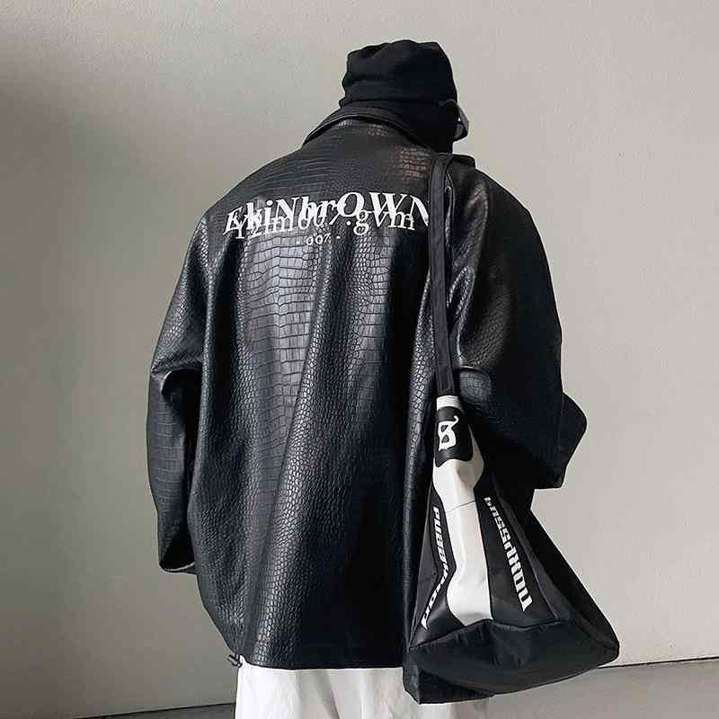 ・スタイル: ストリート系・対象: 若者・着丈: ミドル丈・フィット: ゆったり・襟の形: 襟付き・前開き: ジッパー・フード: なし・素材: PUレザー、ポリエステル・シーン: カジュアル・シーズン: 冬・加工: ノンアイロン・ディテール: バッジ・ポケット: 脇ポケット・裾: ストレート・カラー: ブラック、ホワイト・サイズ: M、L、XL、XXL、XXXL・対象: メンズ・カテゴリ: レザー ジャケット