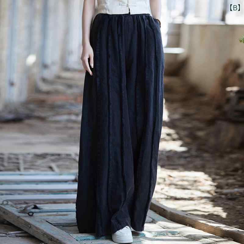 ・主な素材: 苎麻70-80%、綿30-50%・スタイル: 裙裤、ワイドレッグ・パンツ丈: フルレングス・ウエスト: ゴム・厚さ: 普通・加工: ダメージ加工、起毛・カラー: 原麻(サンドウォッシュ起毛)、古銅ブラック(反応染め起毛)、古銅グリーン(反応染め起毛)・サイズ: フリーサイズ・スタイル: 文芸復古、禅スタイル・伸縮性: なし・対象: 女性・カテゴリ: カジュアルパンツ・縫製: 16枚はぎ