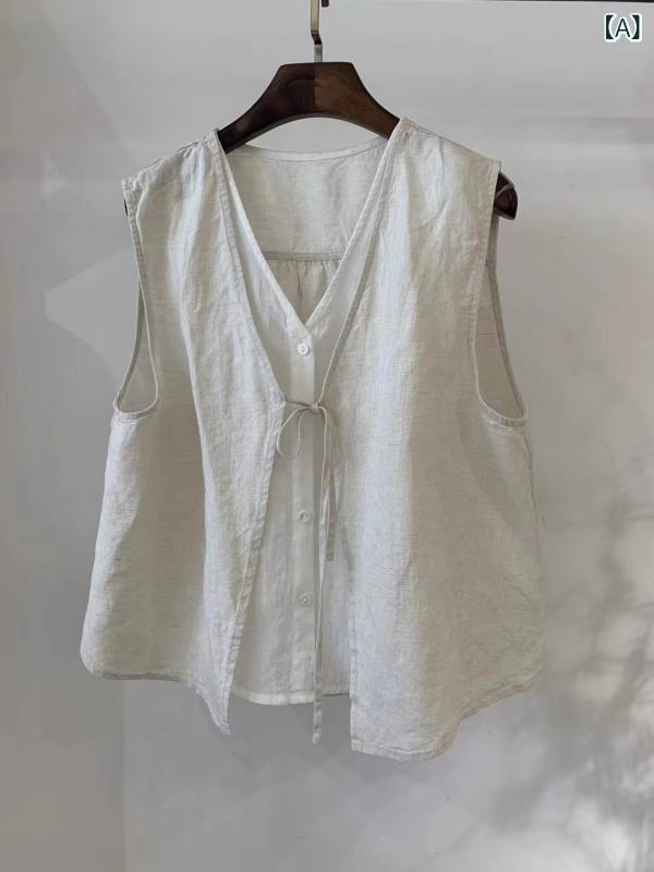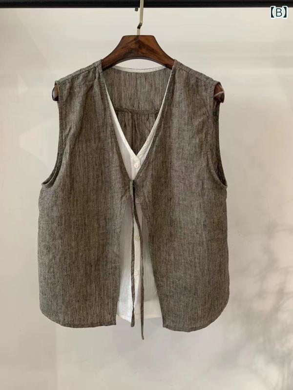 ・スタイル: 文芸風・カテゴリ: 馬甲/ベスト・柄: 無地・ネックライン: Vネック・袖丈: ノースリーブ・着丈: 普通 (50cm超~65cm以下)・素材: 麻・素材構成: 亜麻95%以上・カラー: 麻本色、黄咖、彩格、画像色・サイズ: フリー・対象: 成人、女性・タイプ: カーディガン・フィット: ゆったり・留め具: リボン