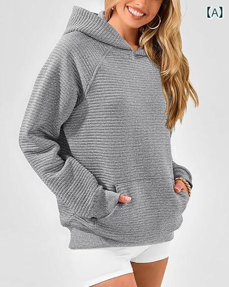 ・柄: ストライプ・スタイル: カジュアル、リラックス・袖丈: 長袖・ネックライン: フード付き・タイプ: プルオーバー・着丈: ミドル丈 (65cm超~80cm以下)・素材: ポリエステル、スパンデックス・生地: ポリエステル・厚さ: 中厚・シルエット: ゆったり・対象: 女性・カラー: グレー、ブラック、レッド、ピンク、グリーン、ブルー、ネイビー・サイズ: S、M、L、XL、XXL・特徴: ポケット・製造方法: しわ加工