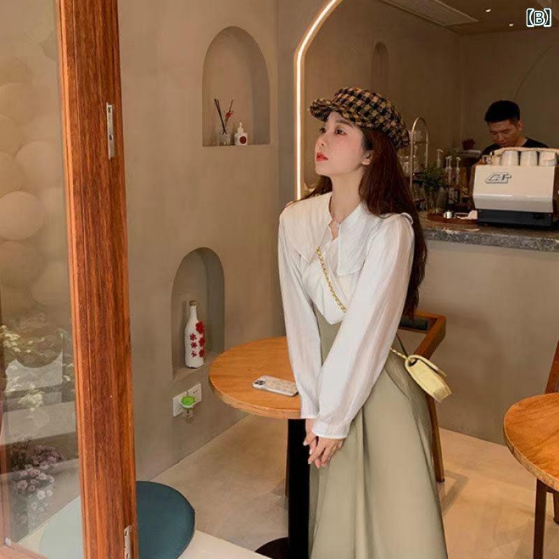 ・項目: 素材・値: ポリエステル・項目: 柄・値: 無地・項目: セット内容・値: トップス、スカート・項目: スカート丈・値: ロング・項目: スカートタイプ・値: Aライン・項目: ネックライン・値: Vネック・項目: 袖丈・値: 長袖・項目: 袖タイプ・値: パフスリーブ・項目: ウエスト・値: ミドルウエスト・項目: カラー・値: トップス, スカート(肩紐調整可能), セットアップ(肩紐調整可能)・項目: サイズ・値: S, M, L, XL, XXL・項目: スタイル・値: 通勤・項目: フロント・値: プルオーバー・項目: 主素材含有量・値: 80-90%・項目: スカート種類・値: ワンピース
