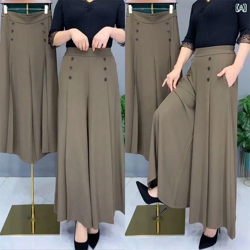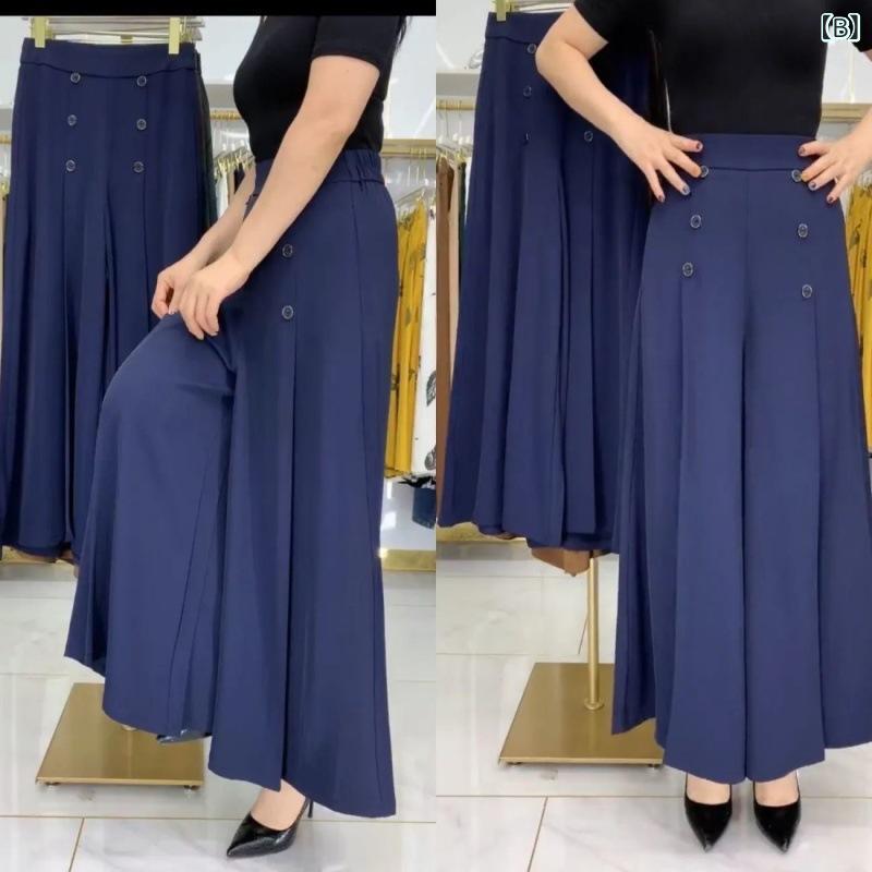 ・素材: ポリエステル90-95%・ボトムス種類: スカーチョ・パンツ型: ワイド・パンツ丈: 9分丈・ウエスト: ハイウエスト・厚さ: 薄手・デザイン: ボタン・カラー: ブラウン、ネイビー、キャメル、ブラック、グリーン、ホワイト、カーキ・サイズ: M、L、XL、XXL、XXXL、4XL・スタイル: 通勤、きれいめ・伸縮性: なし・対象: 女性・種類: カジュアルパンツ・縫製: 裁断