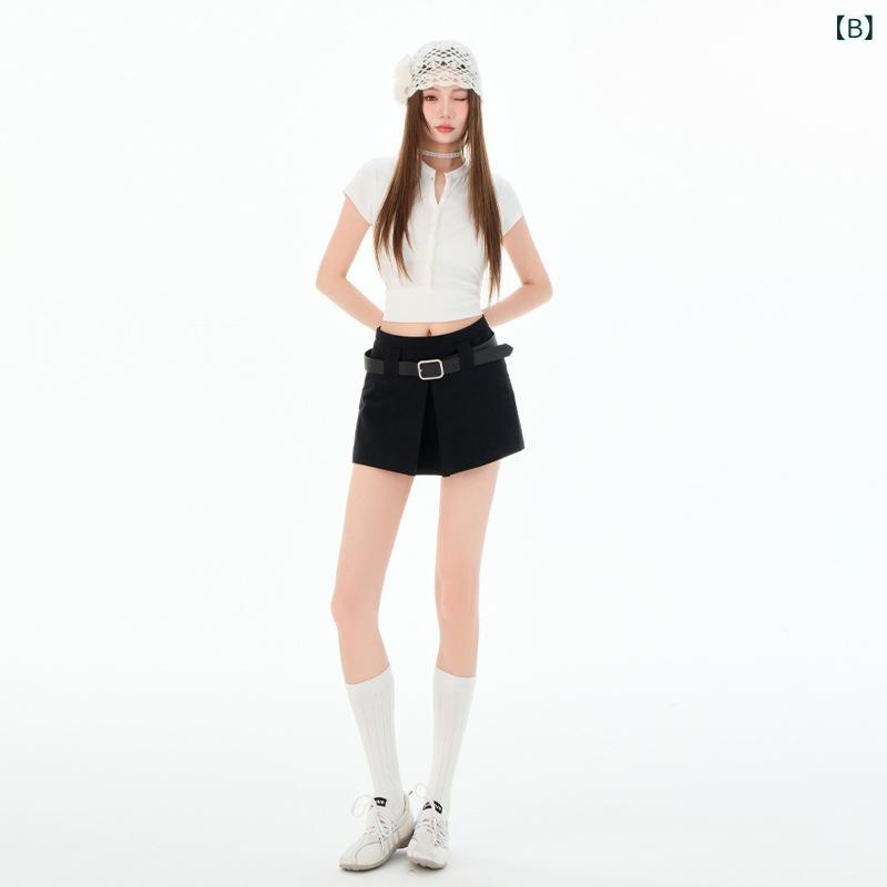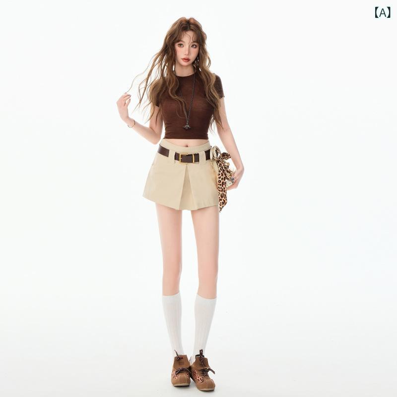 ・素材: 綿・パンツ丈: ショートパンツ・ウエスト: ハイウエスト・厚さ: 普通・スタイル: カジュアル、韓国風・パンツ型: ワイド・アイテム: スカートパンツ・流行の要素: ベルト・カラー: カーキ、ブラック・サイズ: XS、S、M、L、XL・生地: 綿95%以上・伸縮性: なし・対象: 女性・製法: パッチワーク