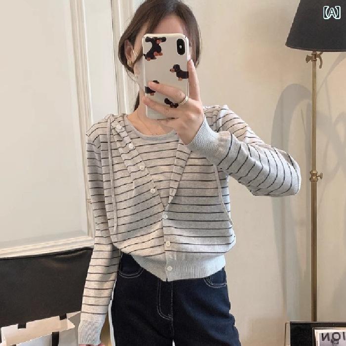 ・素材: シェニール、スパンデックス30%以下・袖丈: ノースリーブ・袖: プリンセススリーブ・ネックライン: ポロネック・カラー: 灰条、白条、杏条、蔵青条・サイズ: フリーサイズ・スタイル: 私服名媛、御姐風・カテゴリ: セーター