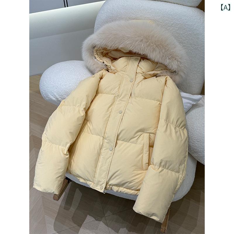 ・カテゴリ: 羽绒服・スタイル: 日韩休闲・厚さ: 超厚・フィット: ルーズ・主な素材: ポリエステル・素材構成: ポリエステル95%以上・詰め物: ホワイトダックダウン・ダウン含有量: 86%~90%・襟: フード付き・ファー: 有り・着脱: 不可・着丈: ミドル丈(50cm<着丈≤65cm)・袖丈: 長袖・袖: レギュラー・前立て: ジッパー・対象: 成人・性別: 女性・充填量: 101-200g・色: 黄色, ピンク, 白, 青, 黒・サイズ: XS, S, M