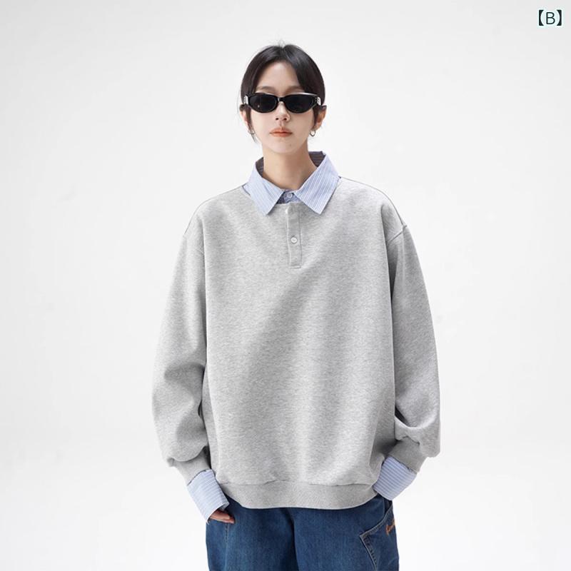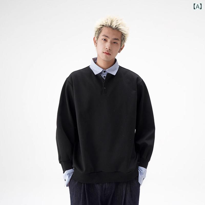 ・スタイル: 韩版・款式: 套头・领型: 翻领・袖丈: 长袖・是否连帽: 不连帽・门襟: 套头・厚薄: 普通・误差范围: 1-3cm・主面料成分: 聚酯纤维(涤纶)・主面料成分の含量: 95%及以上・面料名称: 涤纶・适用场景: 休闲・图案: 其他・款式细节: 其他/other・版型: 宽松型・工艺: 免烫处理・颜色: 黒色,灰色・尺码: M,L,XL,XXL,XXXL・适合人群: 青少年・袖型: 常规袖・克重: 250g(含)-300g(不含)・适用年龄段: 成人・适用性别: 男・产品类别: 卫衣/绒衫