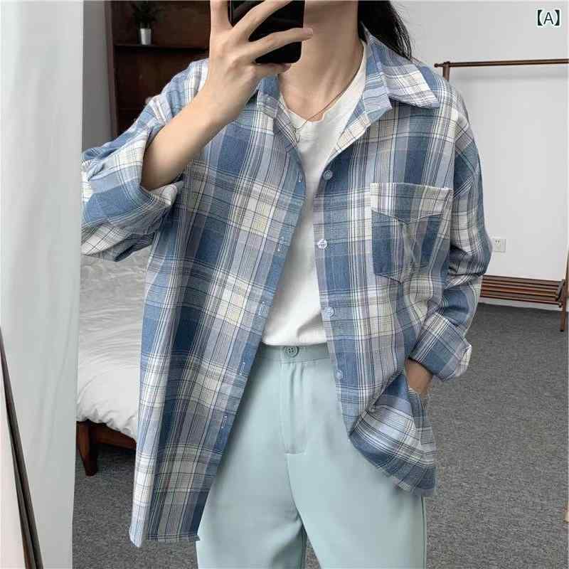 ・素材: ポリエステル, 綿・柄: ストライプ, 格子柄・スタイル: カーディガン・袖丈: 長袖・フィット: レギュラー・着丈: 普通(50cm<着丈≤65cm)・襟の形: 襟付き・袖のタイプ: レギュラー袖・流行の要素: ボタン・カラー: レトロブルー, ブラック・サイズ: S, M, L, XL, 2XL, 3XL・スタイル: 韓国風・フロント: シングルブレスト・主な素材の含有量: 50%-70%・主な素材2の含有量: 30%-50%・製品カテゴリ: シャツ