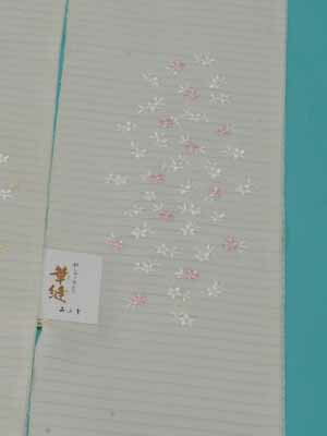 予めご了承くださいませ ほんのりと涼しげな色合い 絹100%の半襟! ワンランク上の 大人の雰囲気です♪ ぜひ一度お試しください。