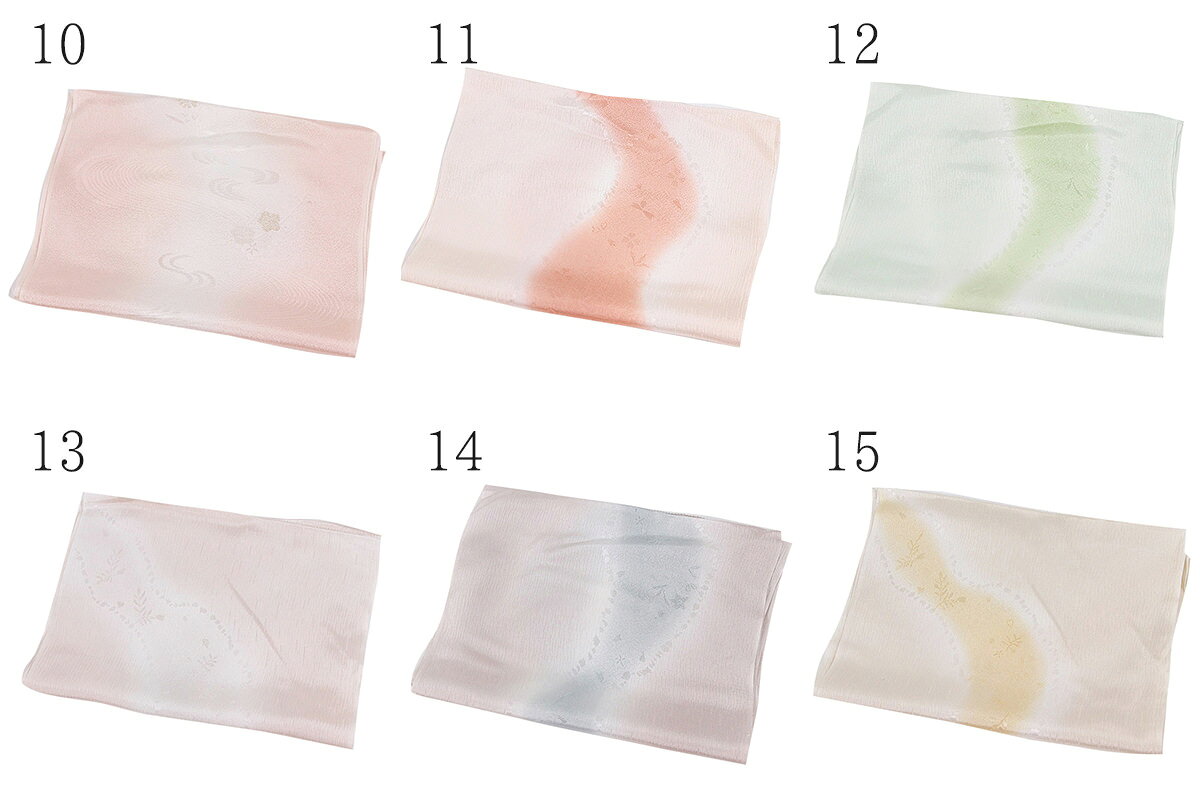 サイズ 約160×30cm 色 1.水色(波) 2.黄緑(波) 3.クリーム(波) 4.シルバー(波) 5.紫 6.緑×青 7.紫×ベージュ 8.青×ベージュ 9.黄緑(波・花) 10.ピンク(波・花) 11.ピンク×濃ピンク 12.黄緑 13.うすピンク 14.うすピンク×水色 15.クリーム×黄 素材 絹100% 商品写真に関してのご注意 できるだけ商品と同じ色目を出すよう努力しておりますが、表示画面等の違いから現物と色の違いが生じる場合がございます。