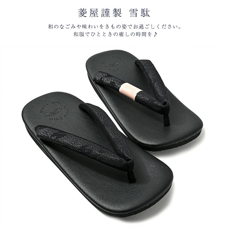 【菱屋謹製 雪駄】 和のなごみや味わいを着物姿でお過ごしください! 和服でひとときの癒しの時間を♪ サイズ Lサイズ 約27×10.5×3cm LLサイズ 約28×11.5×3cm 色 1:薄グレー×黒×グレー 2:黒×紫紺×黒 3:薄グレー×グレー×黒 4:黒×黒×黒 注意事項 できるだけ商品と同じ色目を出すよう努力しておりますが、表示画面等の違いから現物と色の違いが生じる場合がございます。