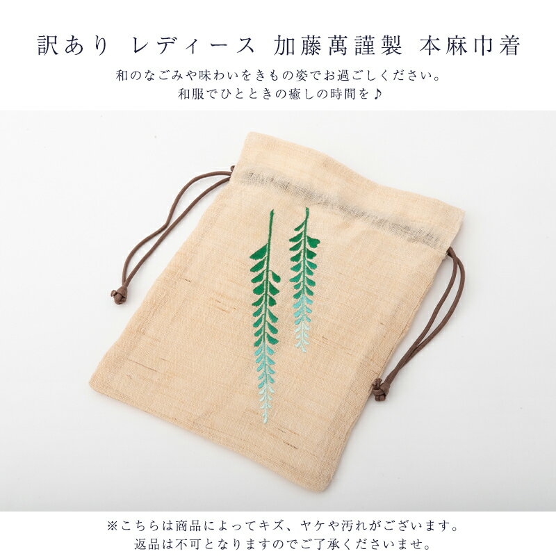 【訳あり 加藤萬謹製 本麻巾着】 和のなごみや味わいをきもの姿でお過ごしください。