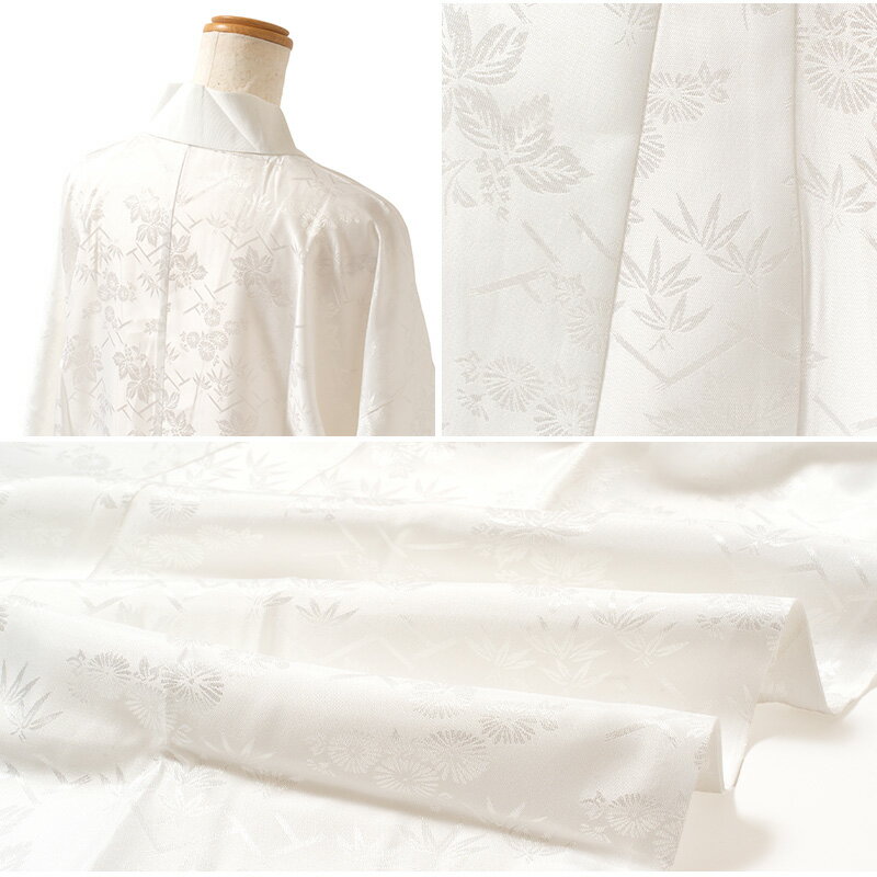和服でひとときの癒しの時間を♪ サイズ S 身丈:約127cm 袖丈:約47cm 裄丈:約62cm M 身丈:約130cm 袖丈:約49cm 裄丈:約63.5cm L 身丈:約133cm 袖丈:約49cm 裄丈:約65.5cm LL 身丈:約135cm 袖丈:約49cm 裄丈:約66.5cm 色 白 素材 本体:ポリエステル100% 半衿:ポリエステル100%