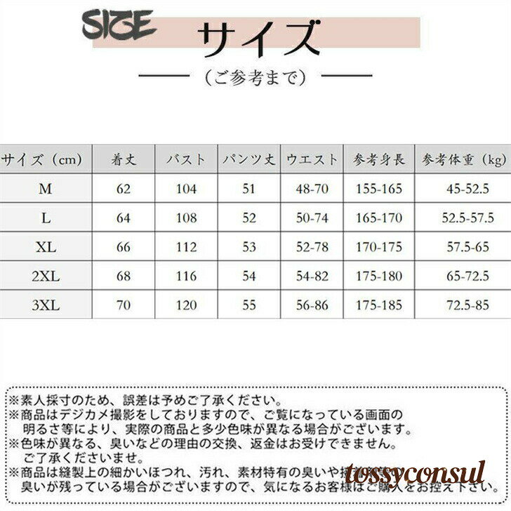 【3XL】:着丈70 バスト120 パンツ55 ウエスト56-86注意
