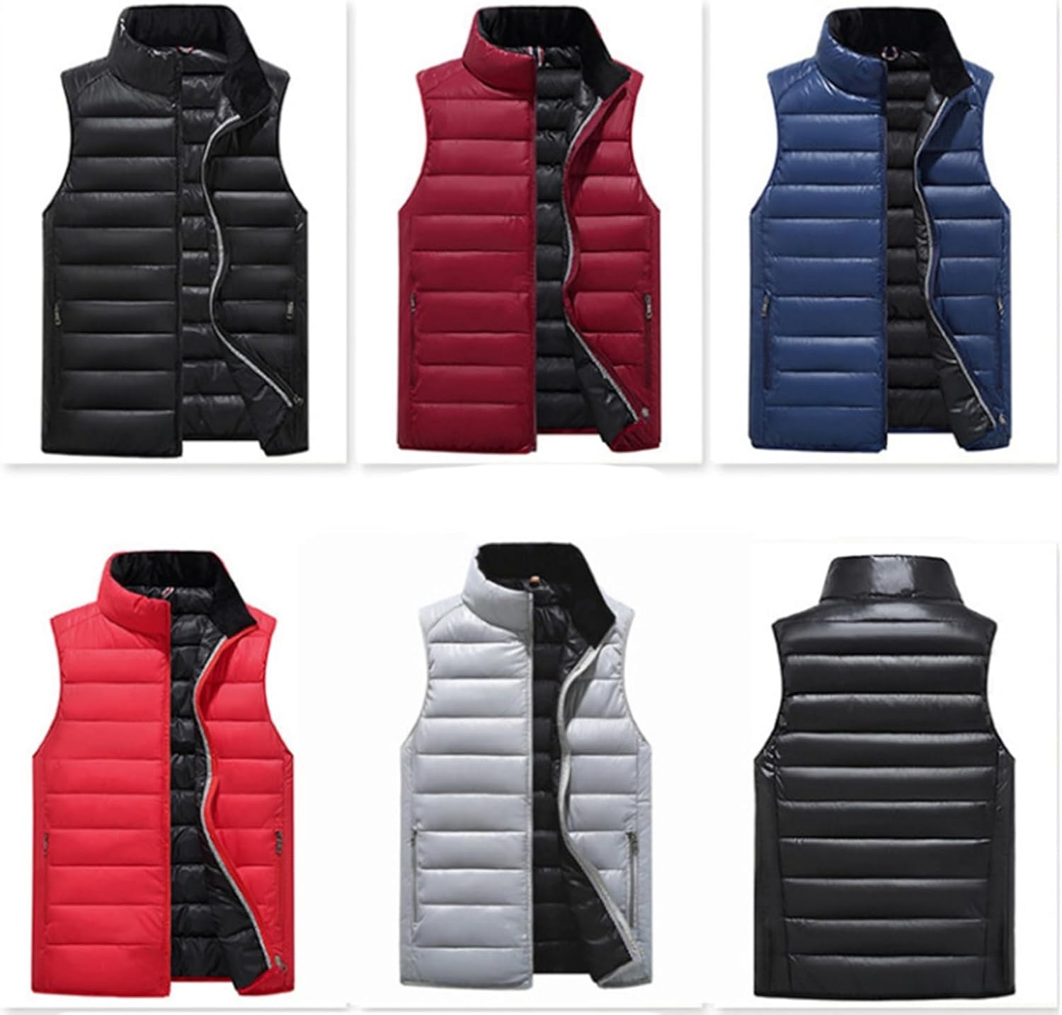 【中綿ベスト】外側の成分はポリエステル繊維で、内部填充物は柔らかくて着心地と手触りが良いダウンコットンです。