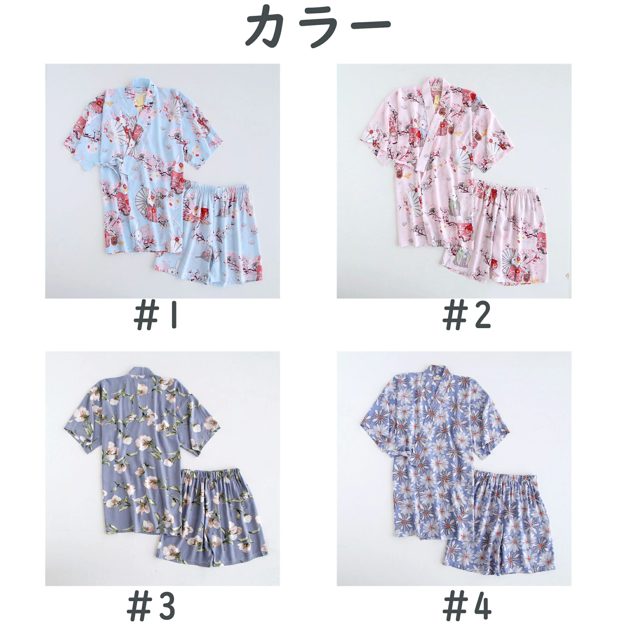 【店内全商品2点600円OFF!】甚平 レディース 半袖 上下セット 涼しい ルームウェア 夏 薄手 綿 花火大会 夏祭り お部屋着 パジャマ 花柄 甚平 レディース "メイン素材:綿1.綿の柔らかなダブルガーゼ: かわいい和柄の女性用甚平,浴衣よりも脱ぎ着が簡単でラクなので人気です。