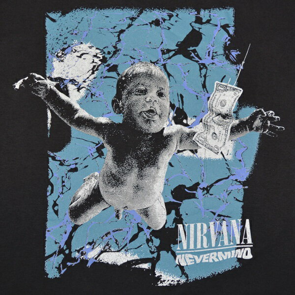 91年作の2nd LPにして歴史的大名盤「Nevermind」のジャケットアートワークをアレンジしたデザインのTシャツ。