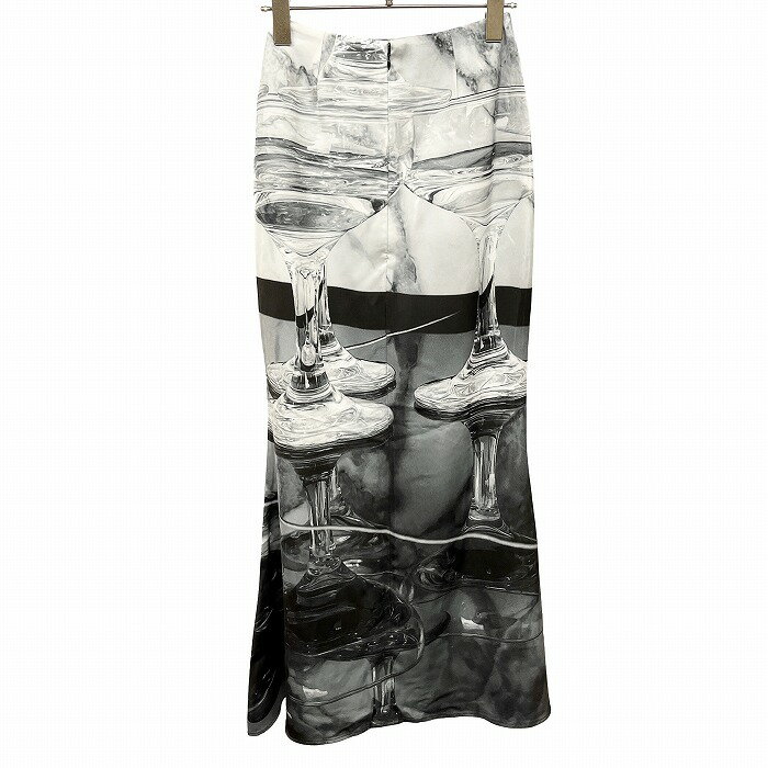【新品/訳アリ】 マーメイドスカート ロング タイト ワイングラスプリント 裏地付き ポリなど S グレー系 レディース 商品データ ブランド