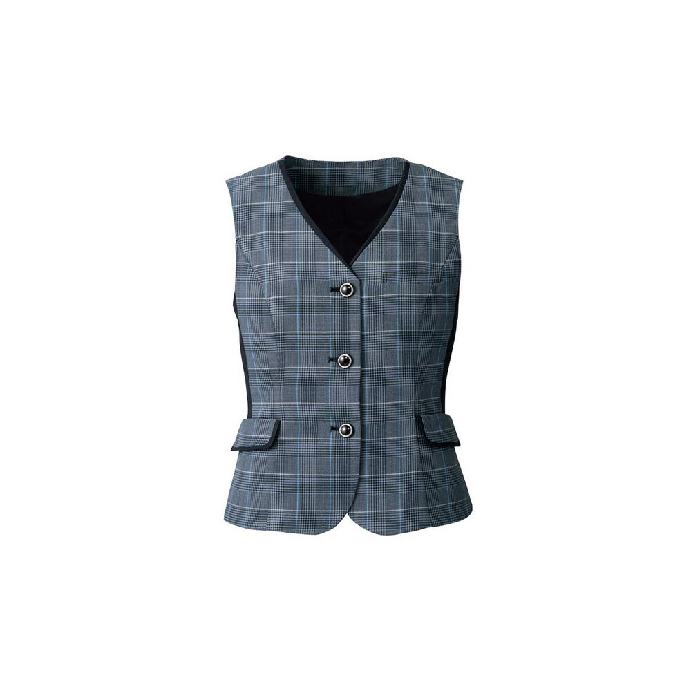 クラシックな千鳥柄に、ウインドウペン柄を組み合わせた現代的なチェック柄の事務服ベストです。