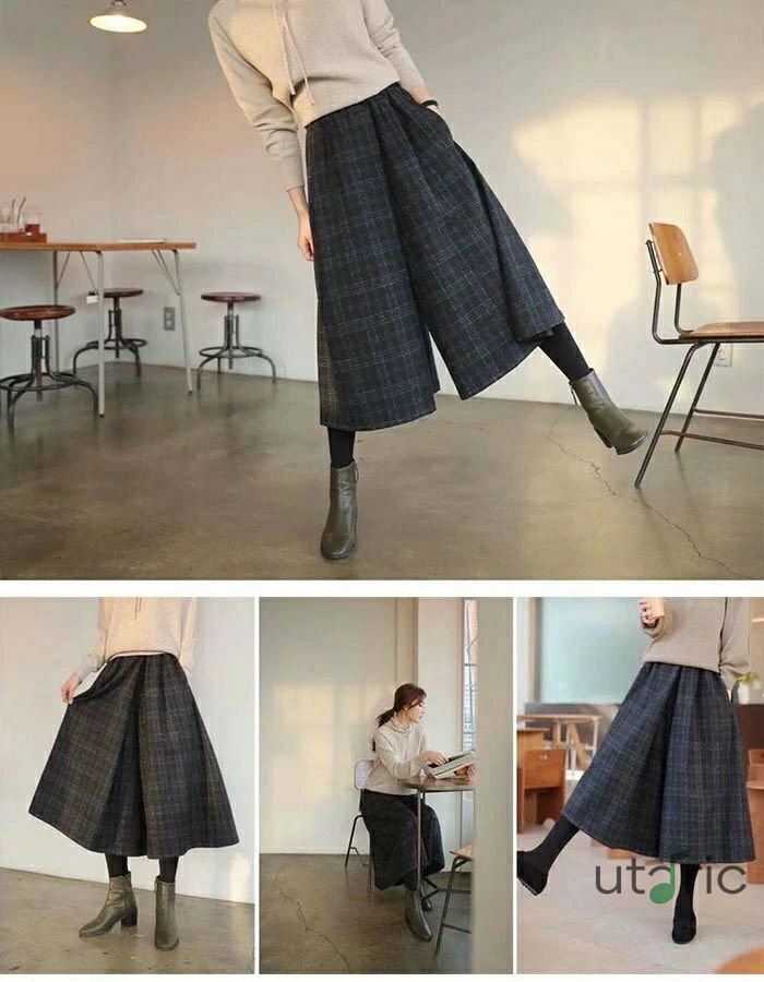 ワイドパンツ レディース ロング丈 パンツ 長ズボン ガウチョパンツ 秋冬 チェック きれいめ ボトムス スカーチョ 冬 防寒 保温 ロングパンツ ワイド ふんわり ボリューム キュロットパンツ 九分丈 ウェストゴム フレアパンツ 暖かい ハイウェスト お洒落 通勤 オフィス 送料無料 30代 40代 50代 20代 60代