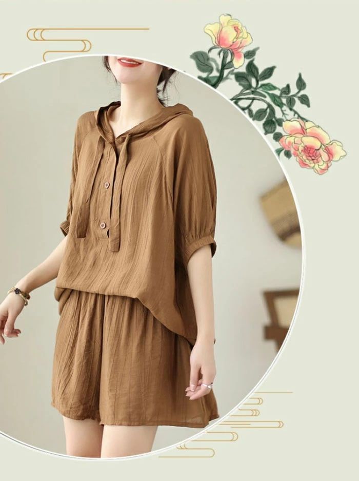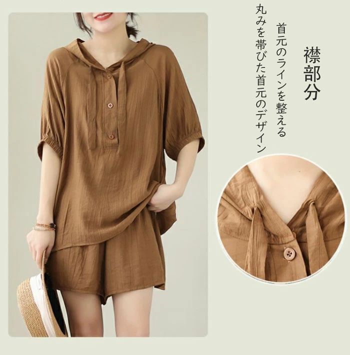 半袖+ショートパンツ 上下セットで近くのコンビニやスーパーマーケットにも行ける服です。