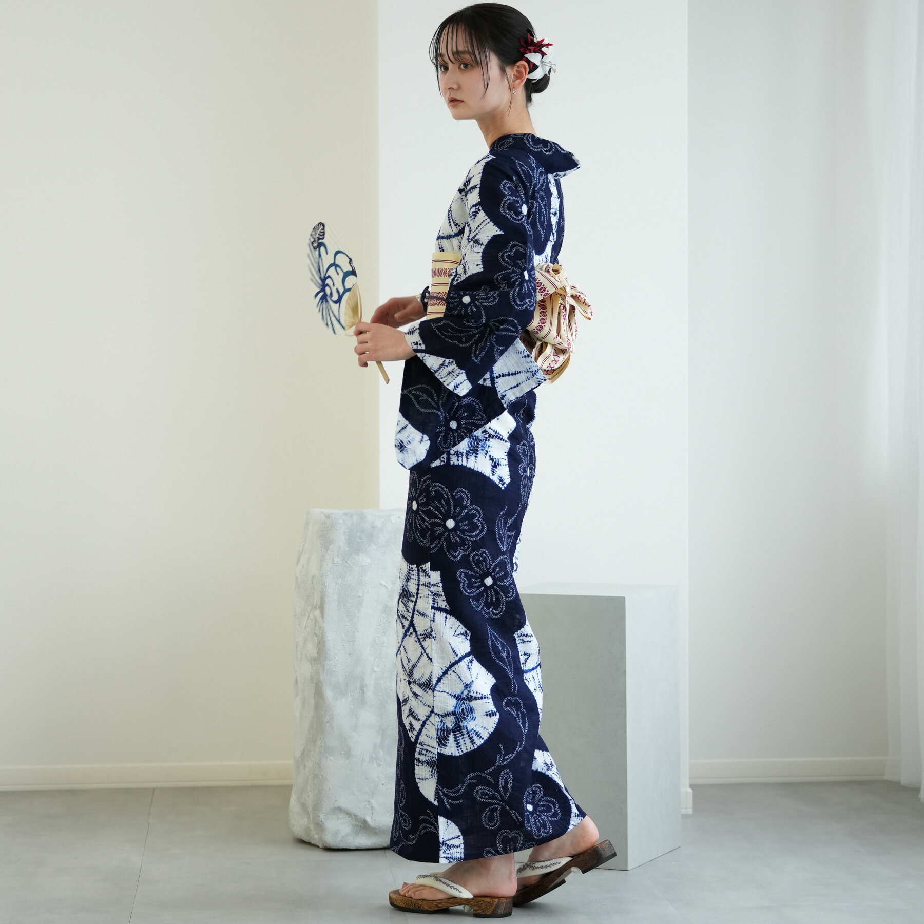 【実寸サイズ】 浴衣:身丈 約165cm・袖丈 約49cm・裄丈 約67cm 下駄:フリーサイズ(約22.5-24.5cm対応)