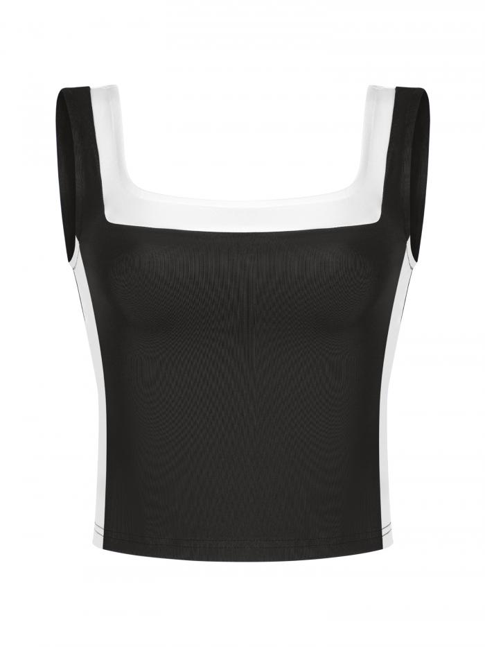 ? スクエアネックラインでトレンドの顔周りをすっきりと見せ、動きを制限することなく体のラインにフィットするスリムフィットデザイン。
