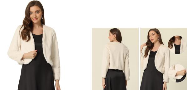 【商品説明】レディースフェイクファー長袖オープンフロントボレロウィンター コート用クロップドジャケットカジュアルなクロップド丈がこのジャケットにユニークなスタイルをもたらします。