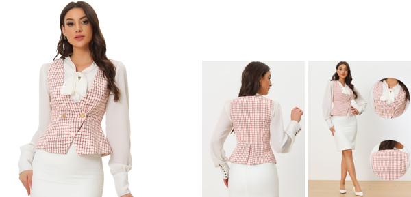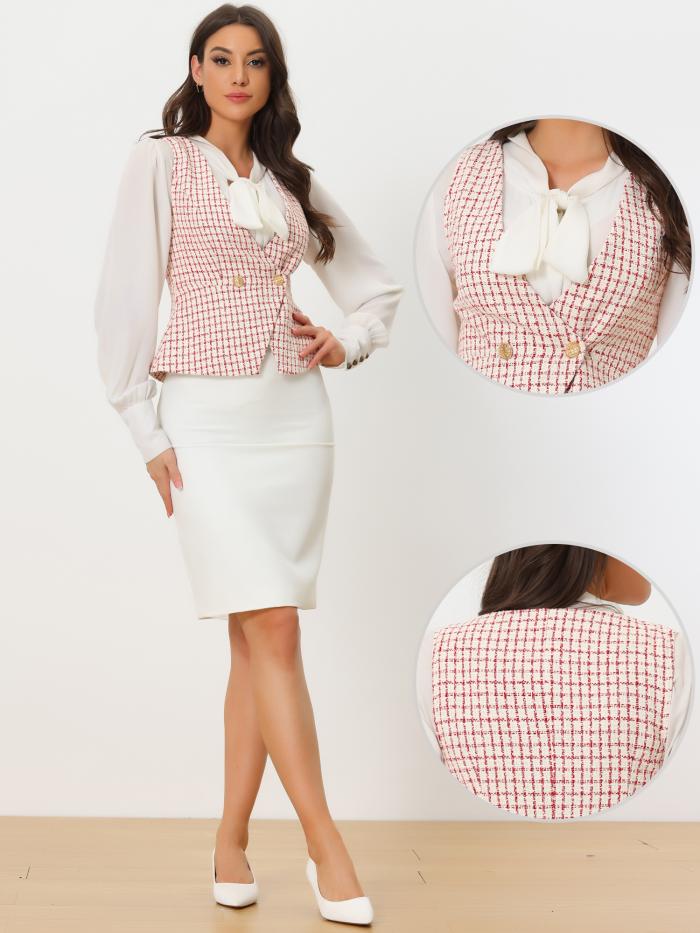 【商品説明】ツイードチェック柄ベスト、カジュアルでエレガント、仕事でもカジュアルでも毎日。