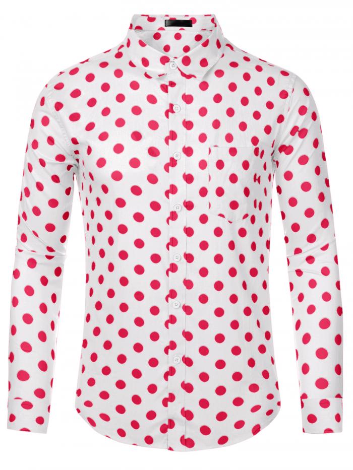 【属性2】フォーマルなイベント、オフィスウェア、デート、結婚式、パーティーに適した水玉プリントのボタンシャツ。
