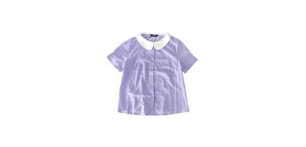【属性3】このブラウスは、コントラストカラー、ピーターパンカラー、ボタンダウンクロージャー、半袖など、いくつかのデザインポイントで構成されています。