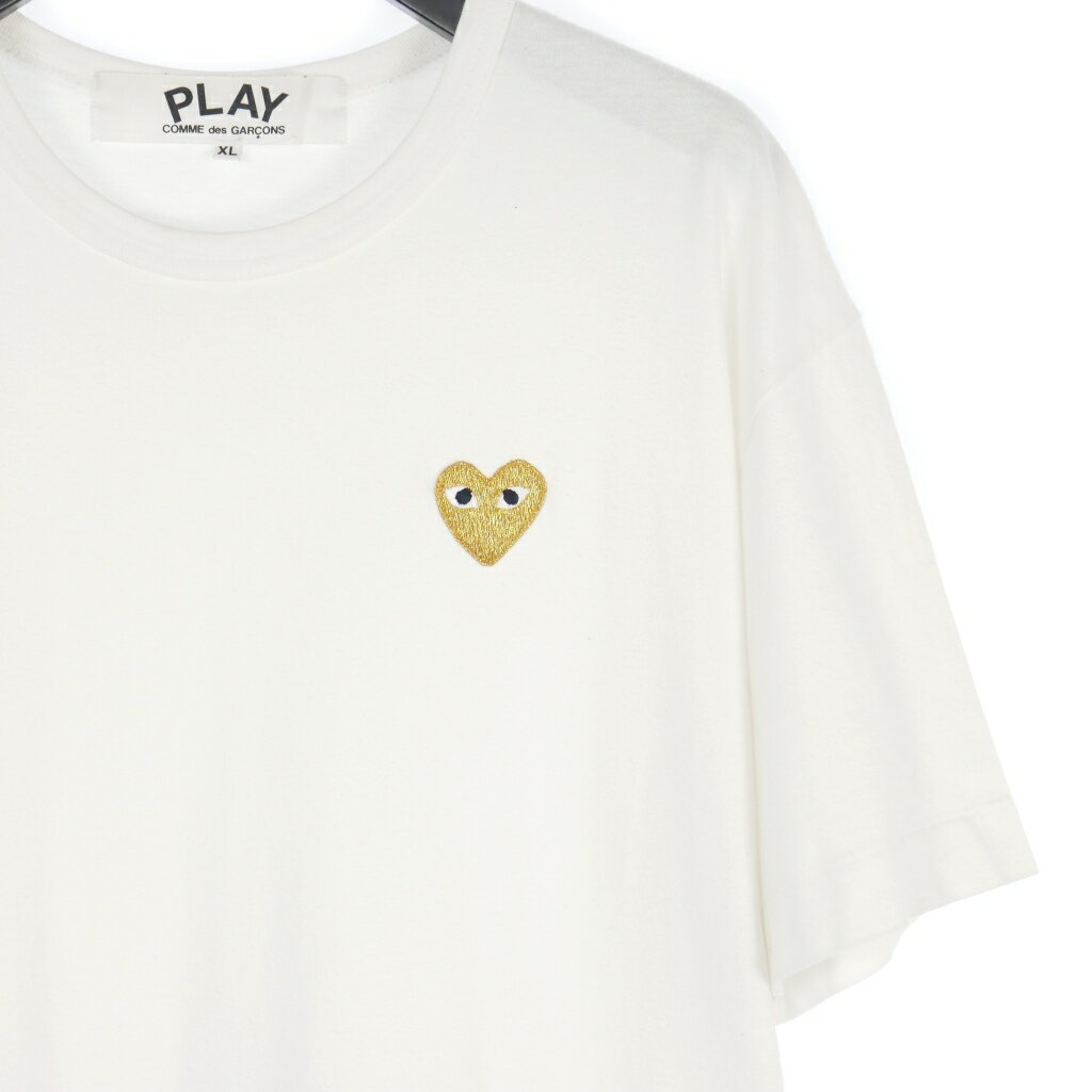 【中古】プレイコムデギャルソン PLAY COMME des GARCONS ハートワッペン Tシャツ カットソー XL 白 金 ホワイト ゴールド メンズ レディース