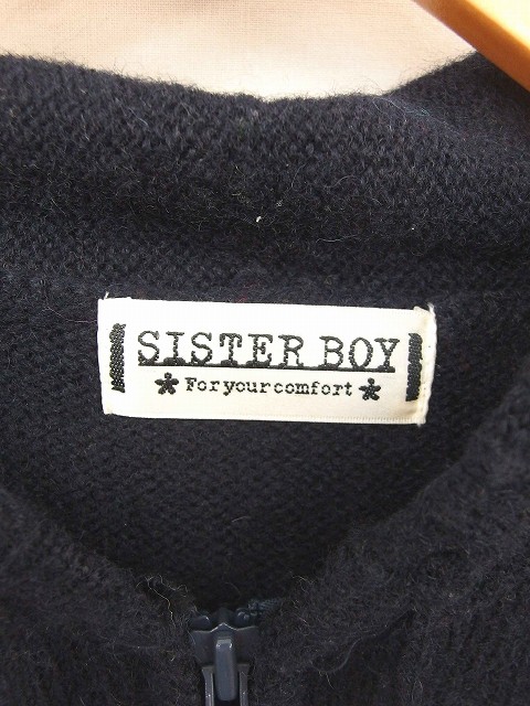 【中古】SISTER BOY パーカー ニット ジップアップ 無地 シンプル ウール 長袖 紺 ネイビー /TT42 レディース