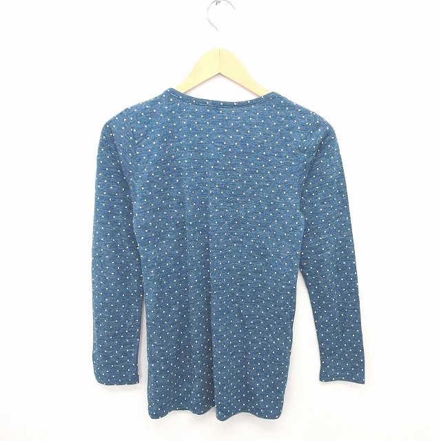 【中古】M.M.O. チュニック 丸首 ドット プルオーバー 長袖 L 青緑 白 ブルー ホワイト /TT35 レディース