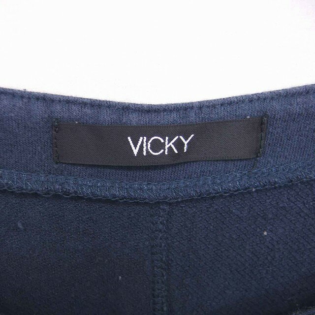 【ベクトル 古着】 220526ブランドビッキー VICKY表記サイズ2実寸サイズ肩幅:約35cm 身幅:約45cm 着丈:約55cm 袖丈:約23cm 素材綿95%、ポリウレタン5%色ネイビー
