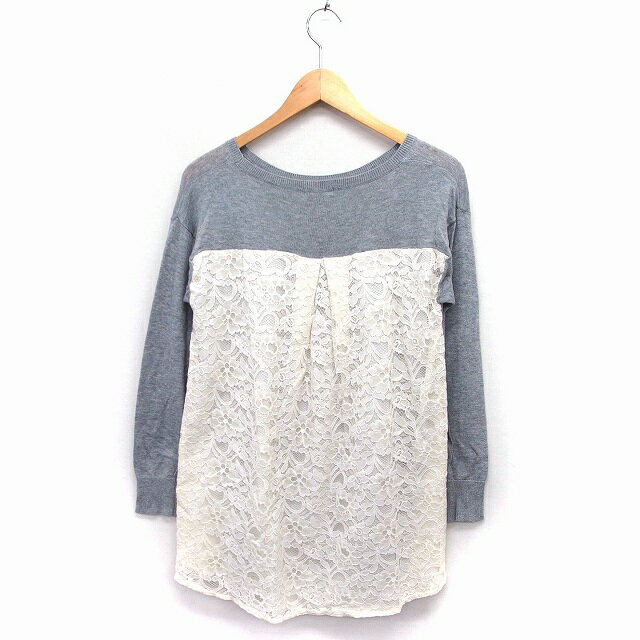 【中古】アースミュージック&エコロジー EARTH MUSIC & ECOLOGY チュニック 切替 ニット レース 長袖 丸首 F グレー /FT37 レディース