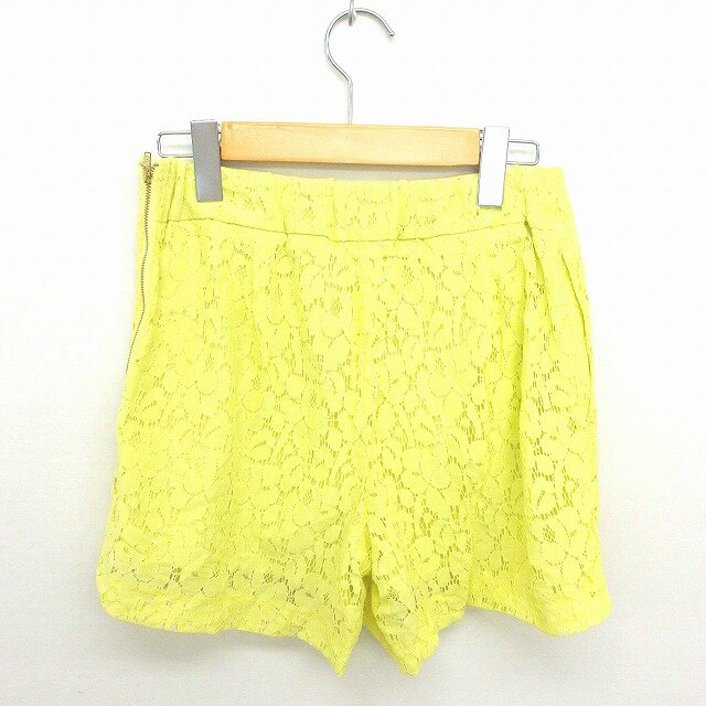 【中古】インデックス INDEX タグ付き キュロット パンツ ショート 総レース 薄手 S 黄緑 ライトグリーン /TT18 レディース