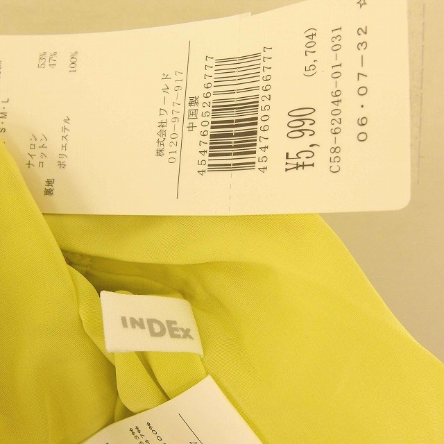 状態ランクについてinformationブランドインデックス INDEX表記サイズS実寸サイズウエスト:約64cm もも幅:約22cm 裾幅:約31cm 股上:約28cm 股下:約10cm 素材表地ナイロン53%、コットン47% 裏地ポリエステル100%色ライトグリーン