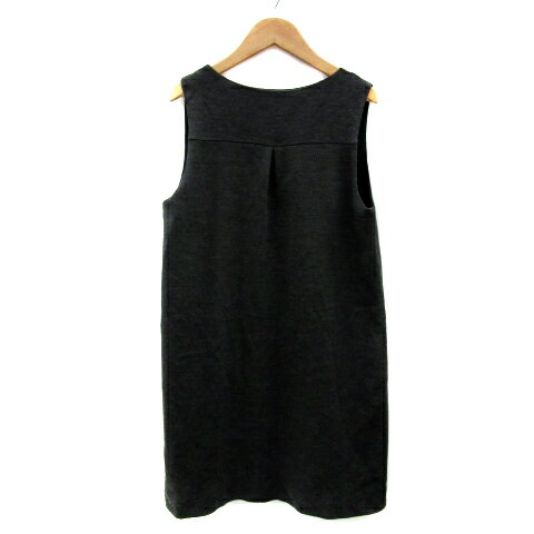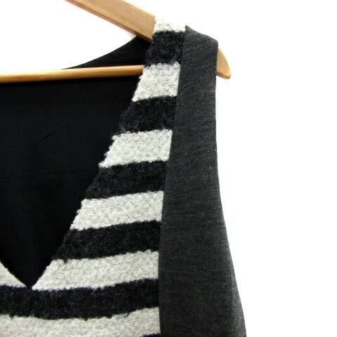【中古】メイソングレイ MAYSON GREY ジャンパースカート ワンピース ミニ丈 Vネック 無地 ボーダー柄 ウール混 2 マルチカラー ダークグレー /YS19 レディース