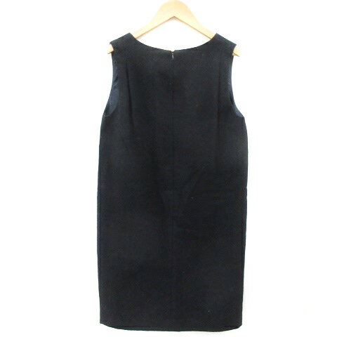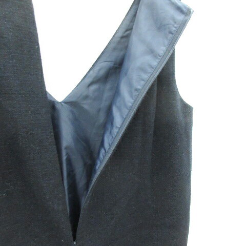 【中古】ナチュラルビューティーベーシック NATURAL BEAUTY BASIC ジャンパースカート ワンピース ミモレ丈 Vネック ウール M ネイビー 紺 /YM19 レディース