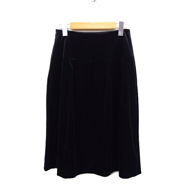 【中古】ハリス HARRISS ベロア タック フレアスカート ひざ下丈 ミディ丈 無地 ブラック 黒 /FT35 レディース